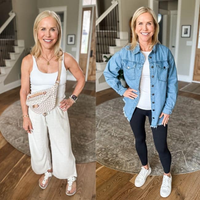 A modern blazer over a tank or fitted tee can add polish while creating shape. You want ease—not excess. Think “tailored with comfort.”